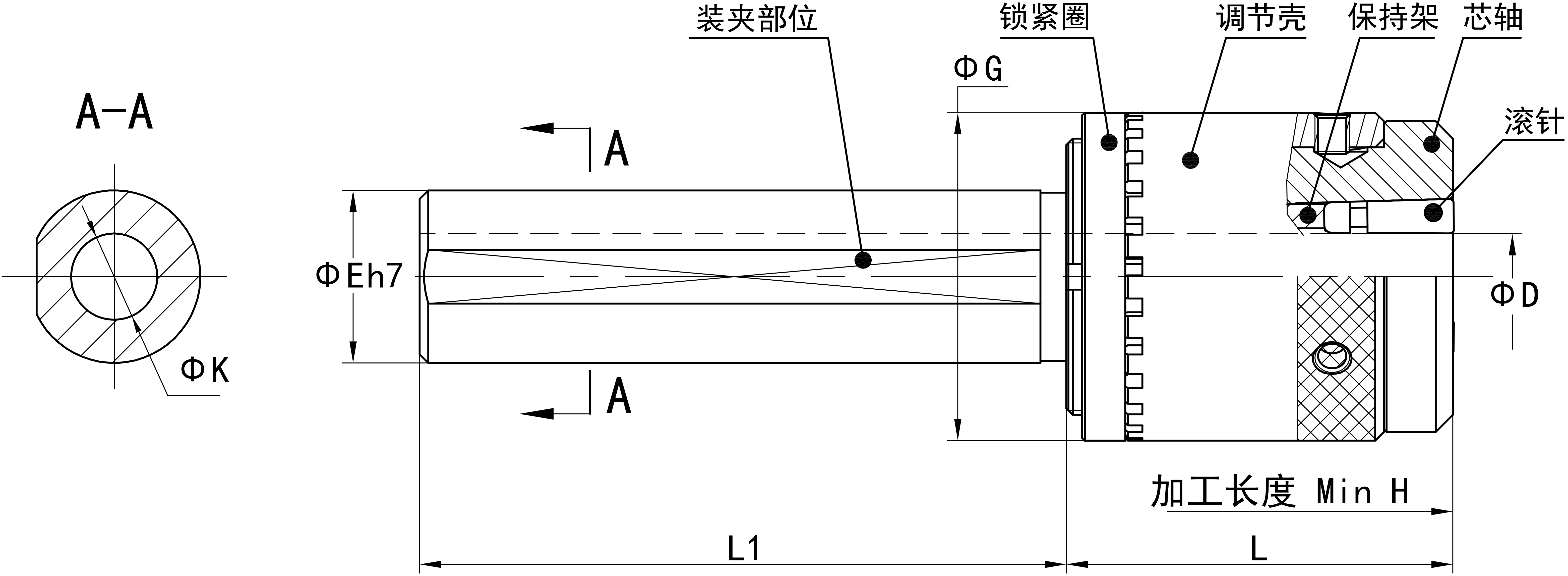 JC-WS系列工具比較適合安裝在有長度限制的機床上,加工直徑Φ3-14mm。當(dāng)裝夾部柄徑采用足夠直徑時,由于柄部內(nèi)孔大于滾壓尺寸,加工長度將無限制。